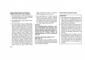 (Motor start/stop) holdes nede i to sekunderHvis tændingskontakten efterlades i posi-tøjet i gang. Køretøjer udstyret med auto-