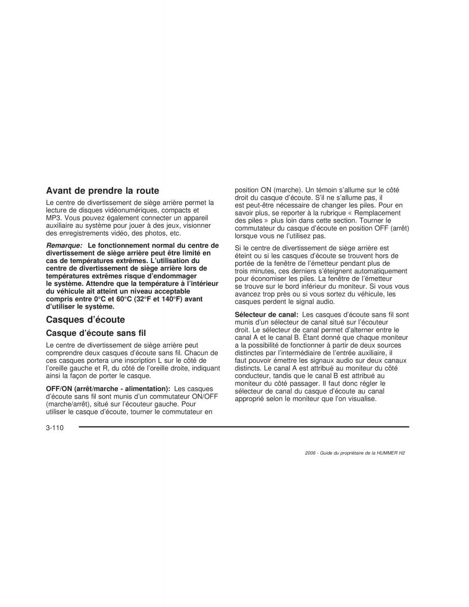 owners manual Hummer H2 - year of production: 2002, 2003, 2004, 2005, 2006, 2007, 2008, 2009, 2010 - Hummer H2 manuel du proprietaire FR