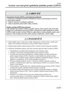 • Systém LDWS upozorní idie, že by se vozidlo mohlo vychylovat ze svého jízdního