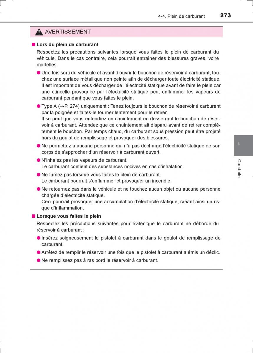 ●Type A (→P. 274) uniquement : Tenez toujours le bouchon de réservoir à carburant
