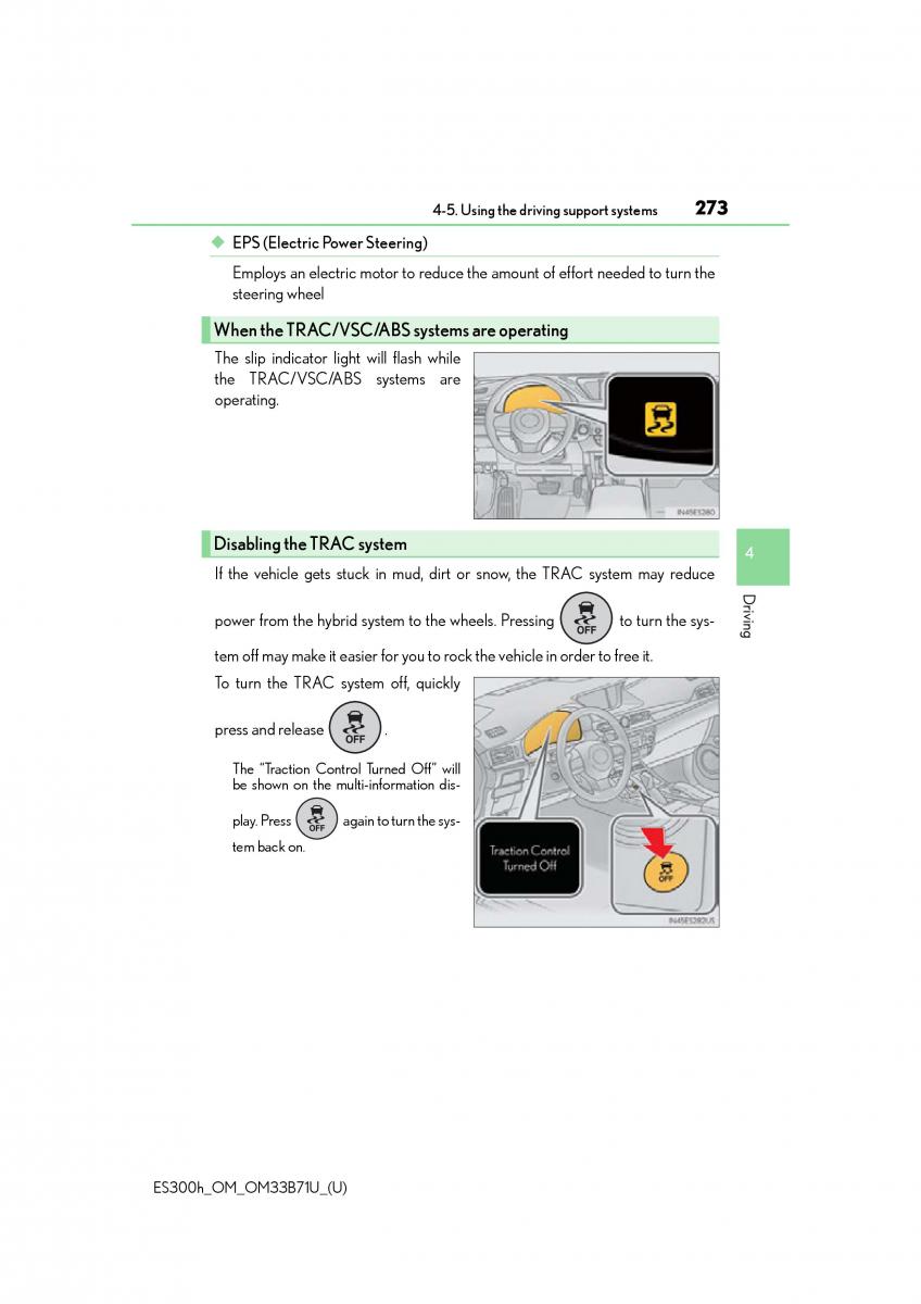 from owners manual to the vehicle Lexus ES300h, year of production 2012:
