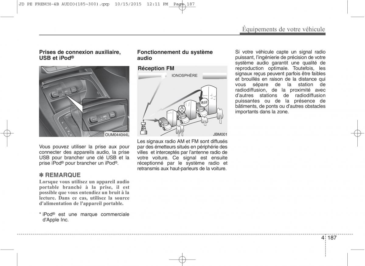 Prises de connexion auxiliaire, Fonctionnement du système Si votre véhicule capte un signal radio