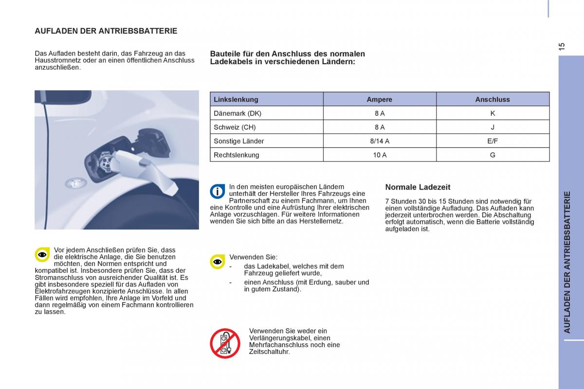 Das Au fl aden besteht darin, das Fahrzeug an das Bauteile für den Anschluss des normalen 15