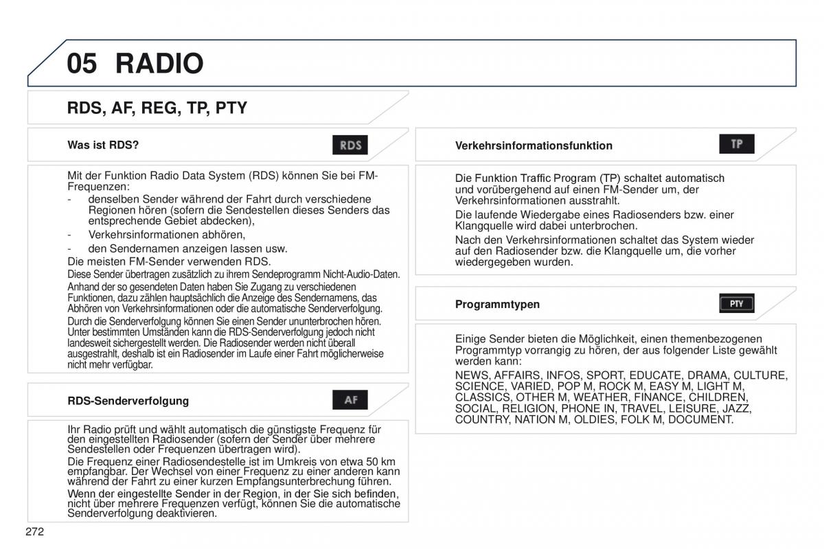 Abhören von Verkehrsinformationen oder die automatische Senderverfolgung.Programmtypen