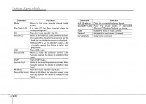 FM/AM radio commands: Commands available during FM, Audio CD commands: Commands available during Audio