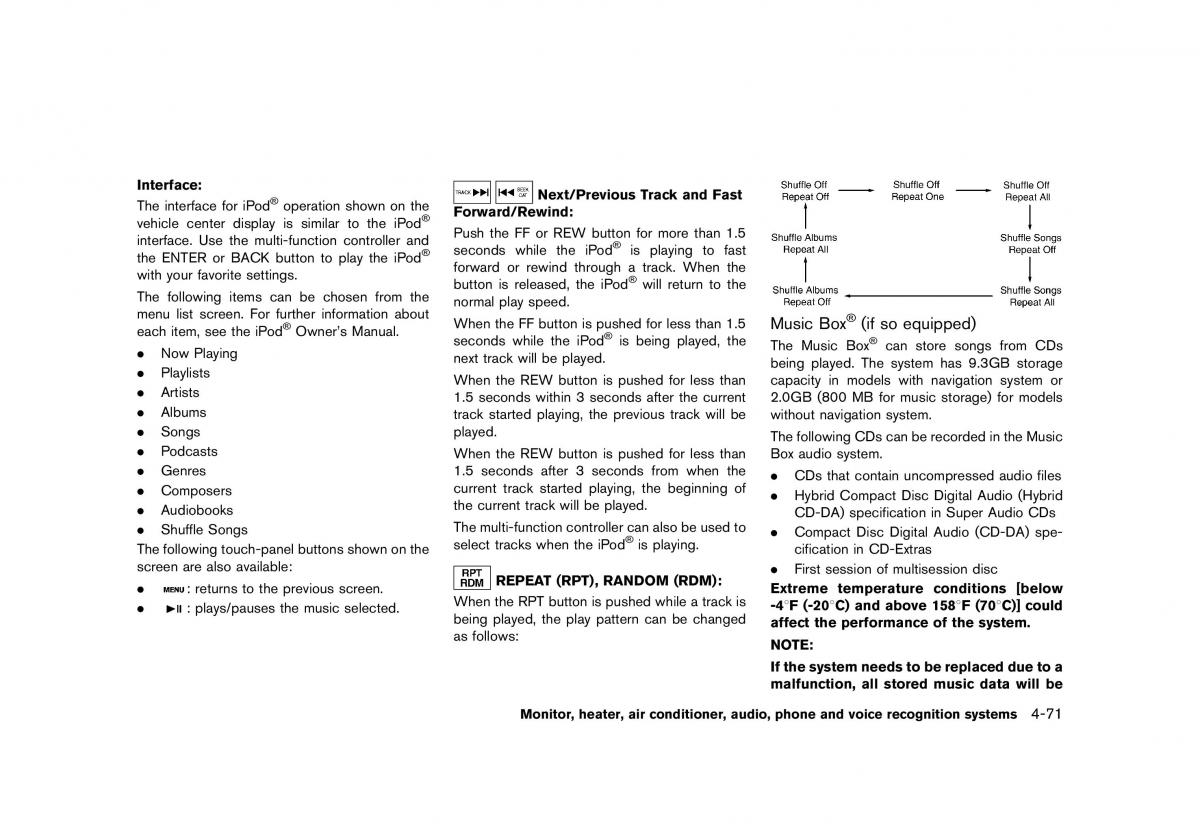 Monitor, heater, air conditioner, audio, phone and voice recognition systems 4-71