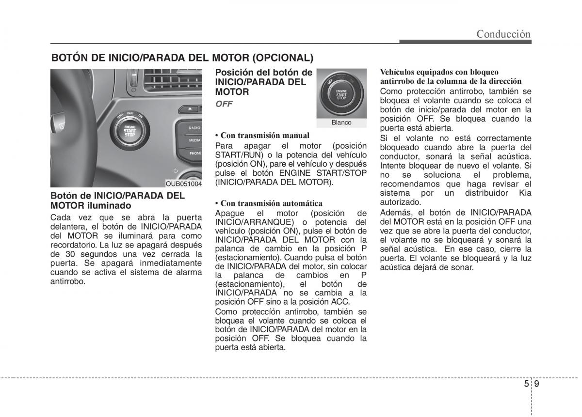 OUB051004(INICIO/PARADA DEL MOTOR). recomendamos que haga revisar el