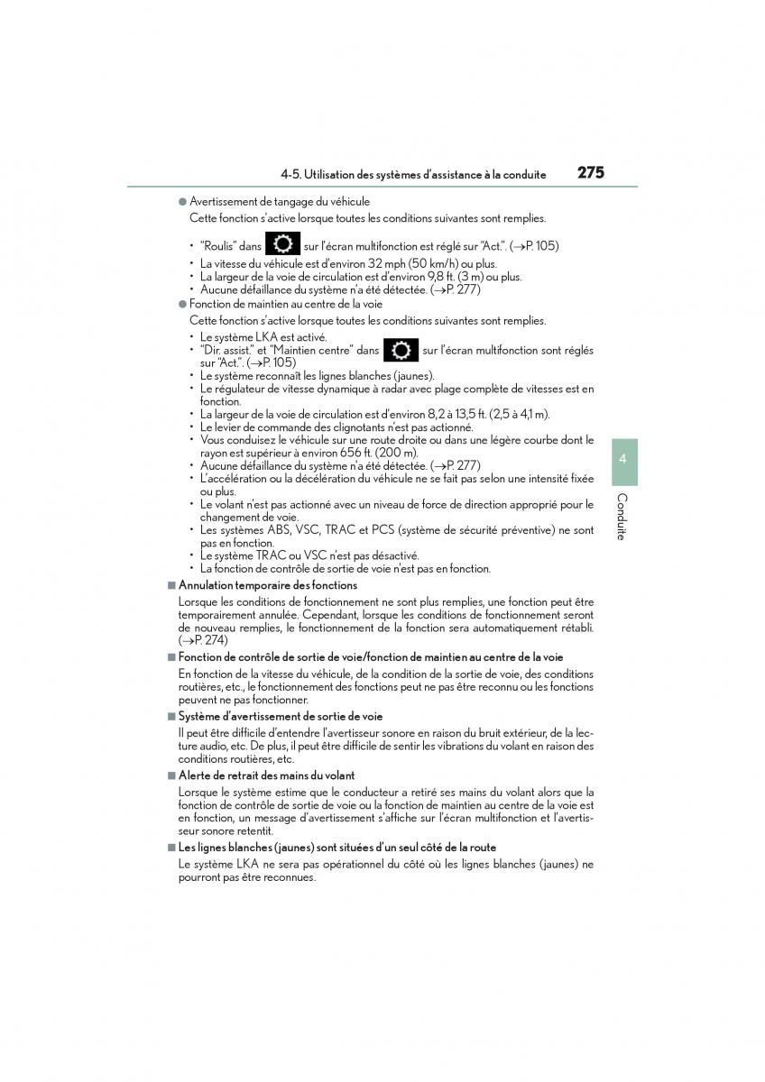 4-5. Utilisation des systèmes d’assistance à la conduite275