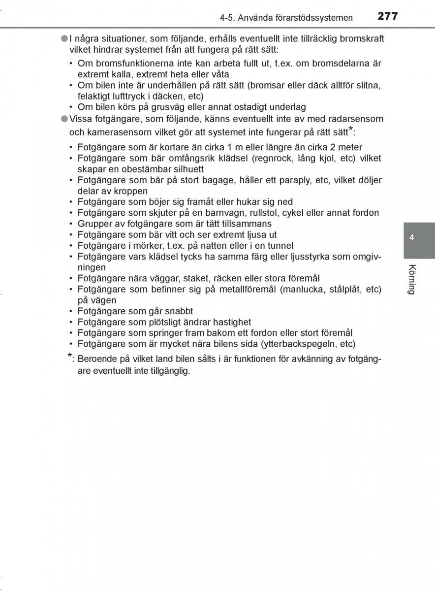 *: Beroende på vilket land bilen sålts i är funktionen för avkänning av fotgäng-