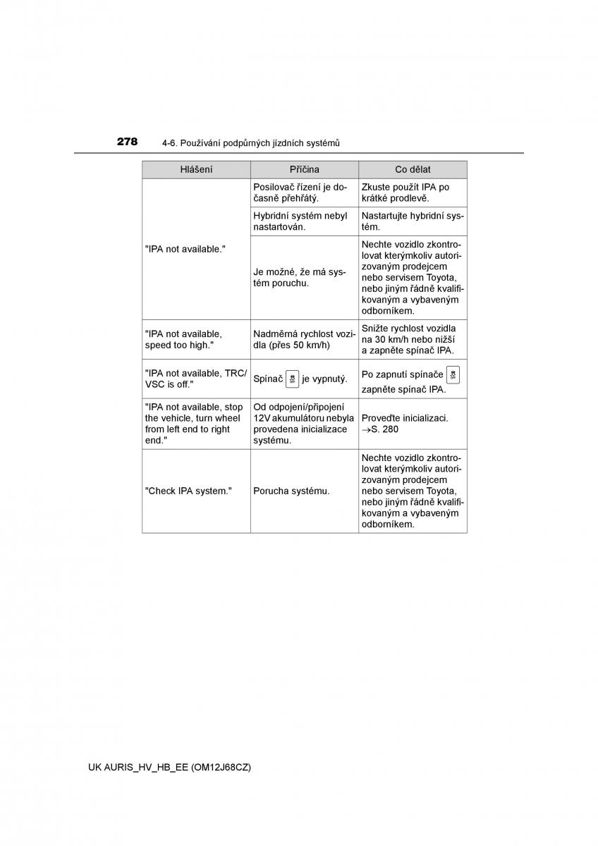 "Check IPA system."Porucha systému.nebo servisem Toyota,