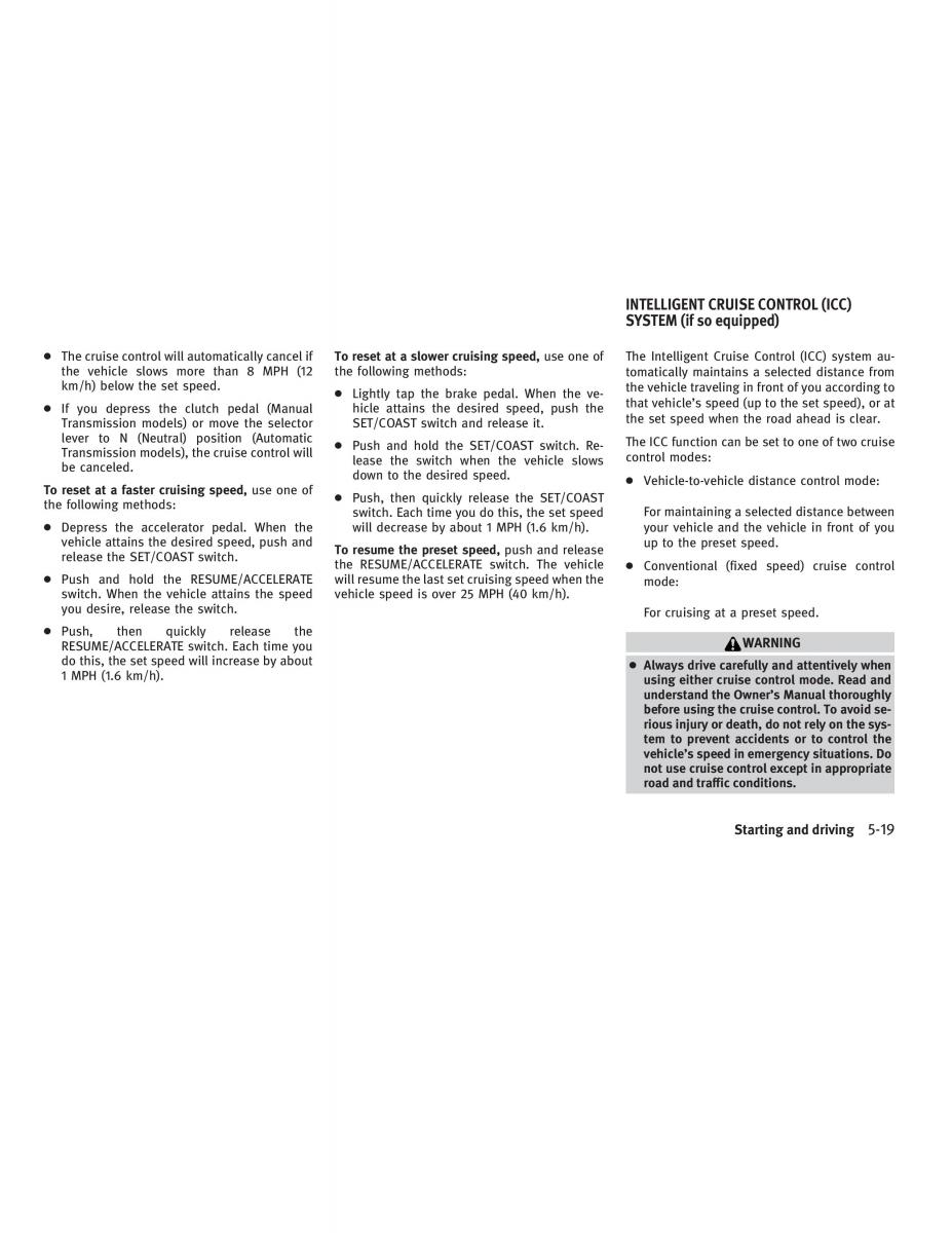 lever to N (Neutral) position (Automatic● Push and hold the SET/COAST switch. Re-The ICC function can be set to one of two cruise