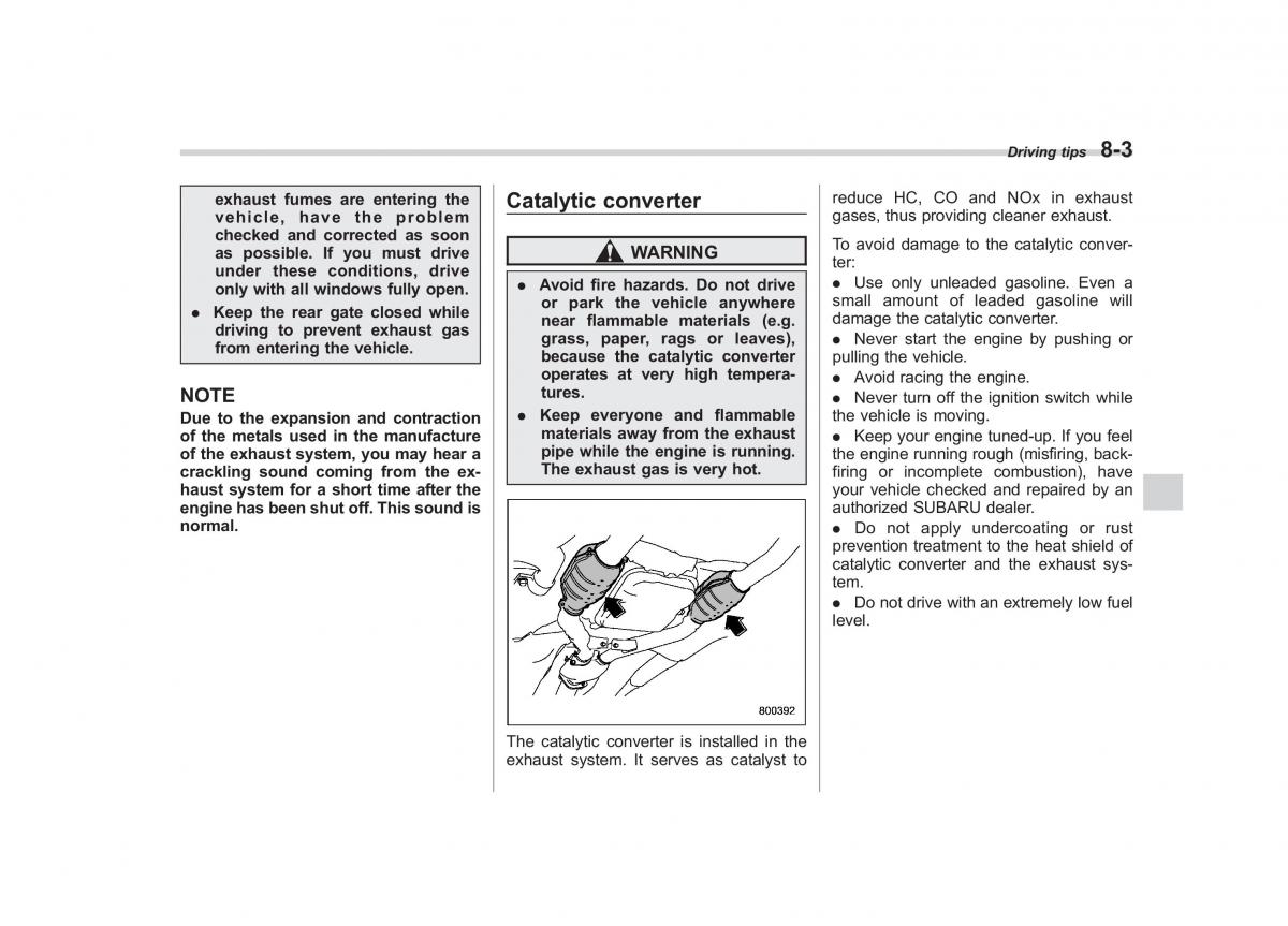 . Keep the rear gate closed whilenear flammable materials (e.g.damage the catalytic converter.