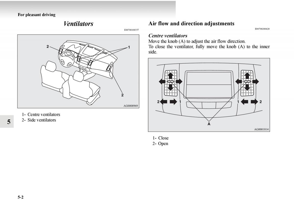 Move the knob (A) to adjust the air flow direction.