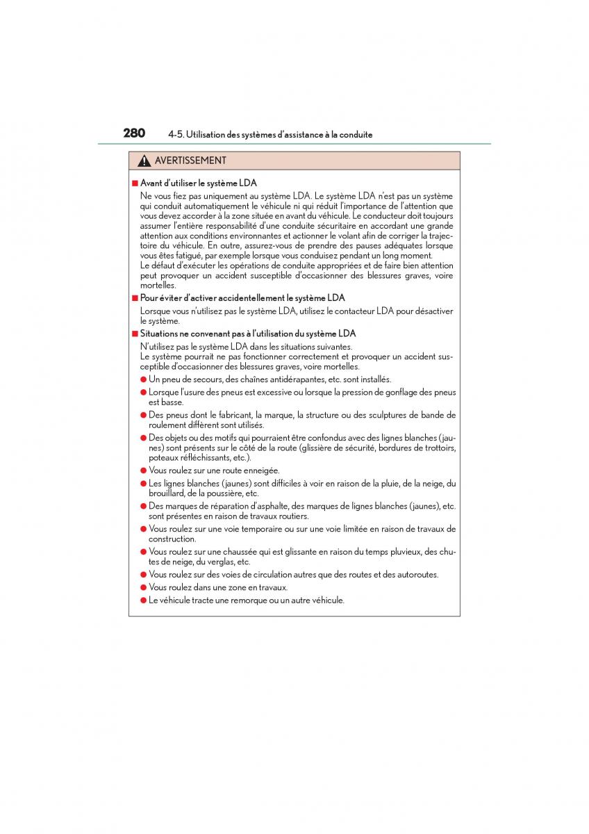 280 4-5. Utilisation des systèmes d’assistance à la conduite