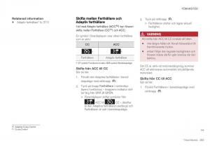 Adaptiv farthållare* (s. 271) ligt sätta ACC i beredskapsläge.