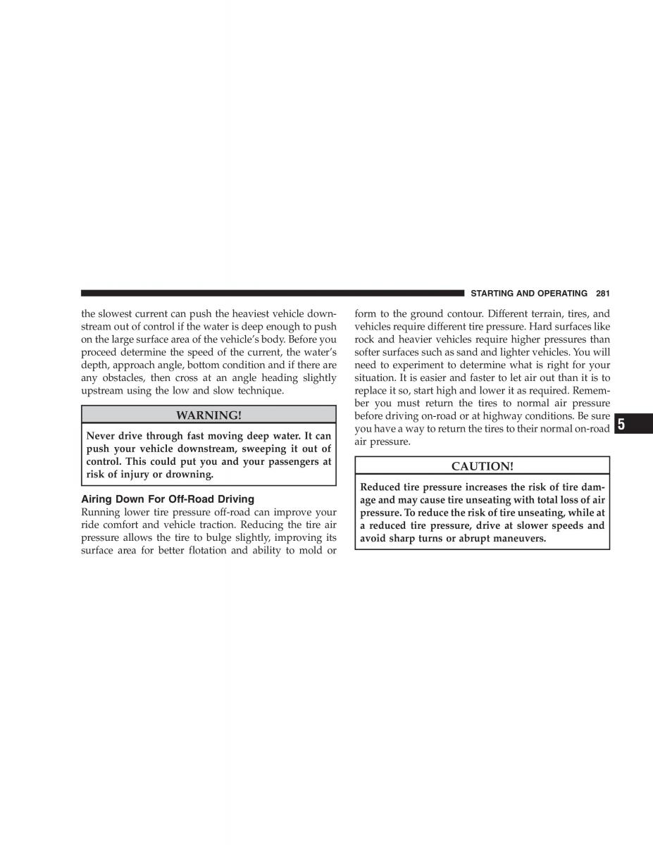 stream out of control if the water is deep enough to pushvehicles require different tire pressure. Hard surfaces like