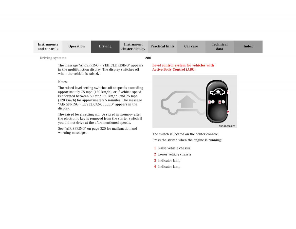 in the multifunction display. The display switches off Active Body Control (ABC)