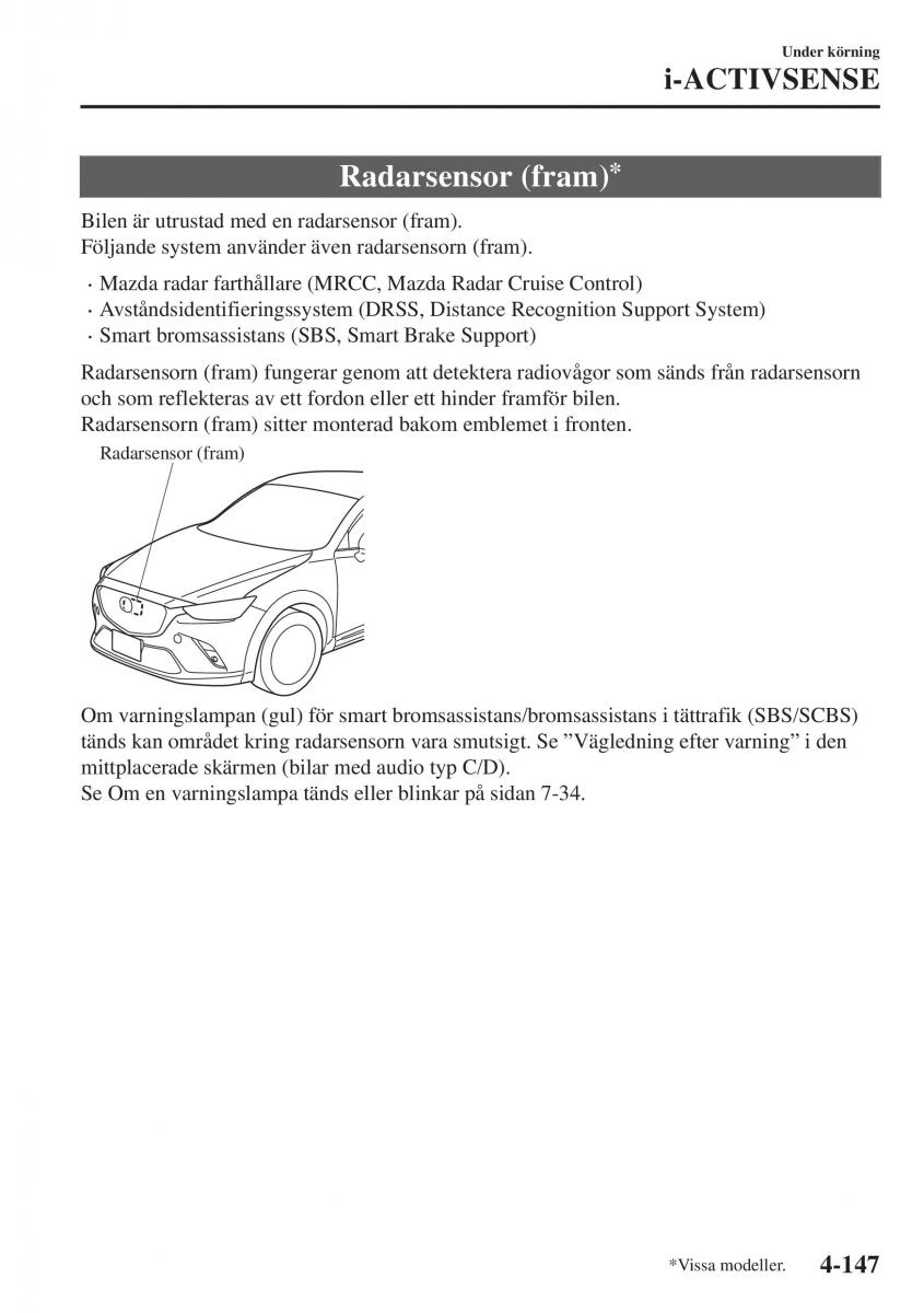 •Mazda radar farthållare (MRCC, Mazda Radar Cruise Control)