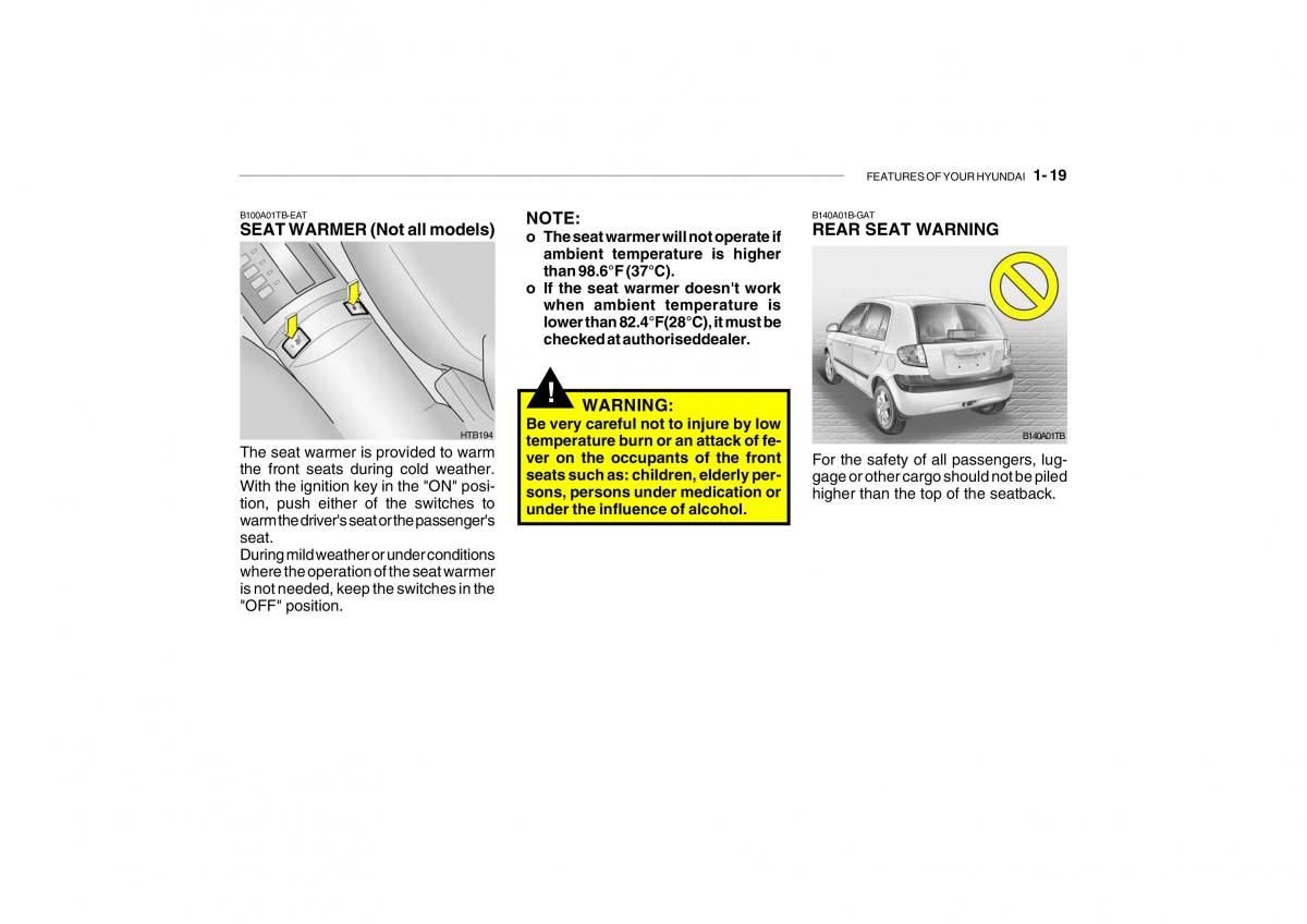 SEAT WARMER (Not all models) o The seat warmer will not operate if REAR SEAT WARNING