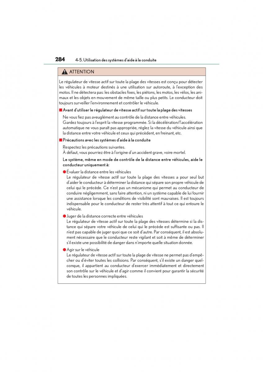 284 4-5. Utilisation des systèmes d’aide à la conduite