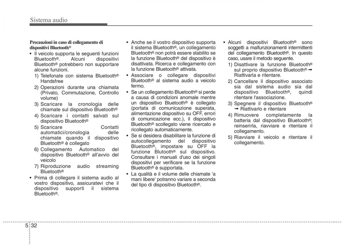 Il veicolo supporta le seguenti funzioni Bluetooth non potrà essere stabilito sedel collegamento Bluetooth. In questo