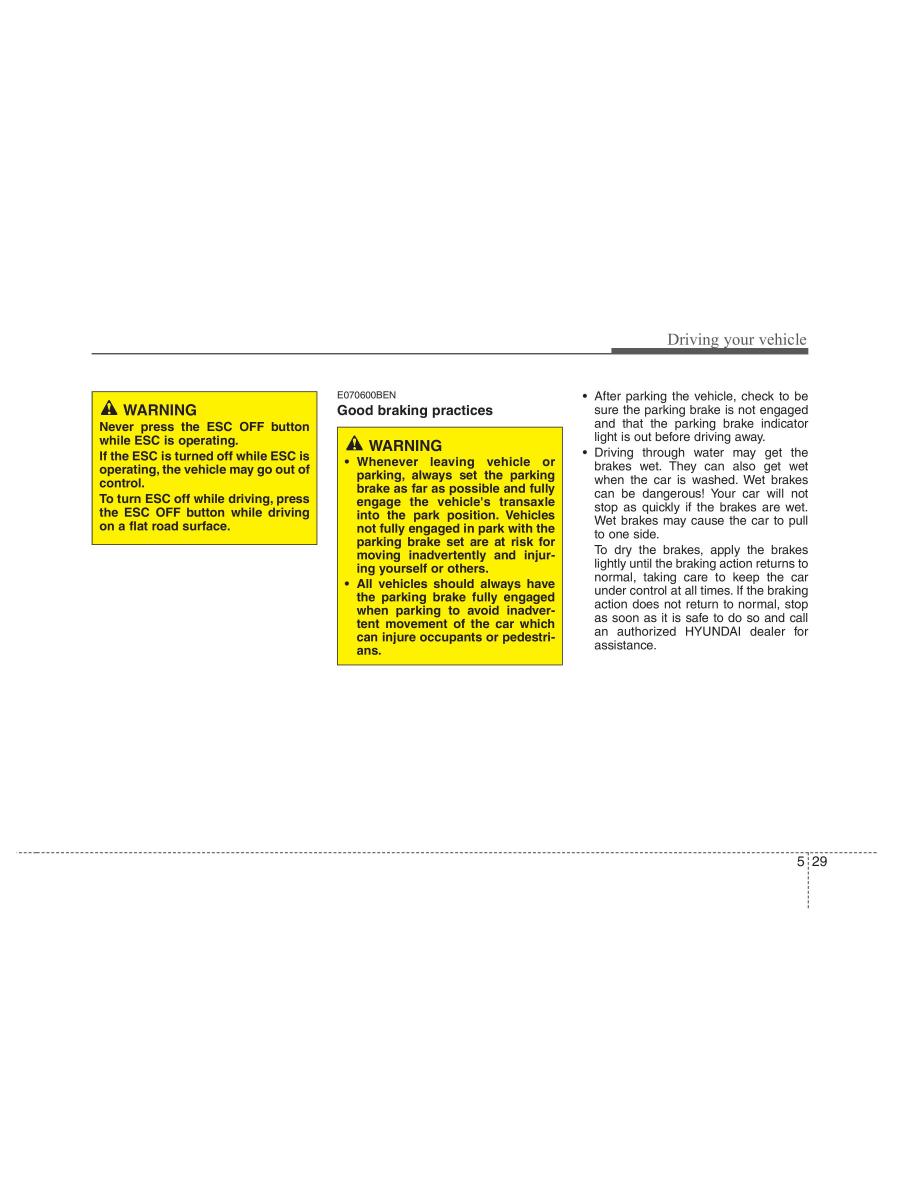 the ESC OFF button while driving stop as quickly if the brakes are wet.