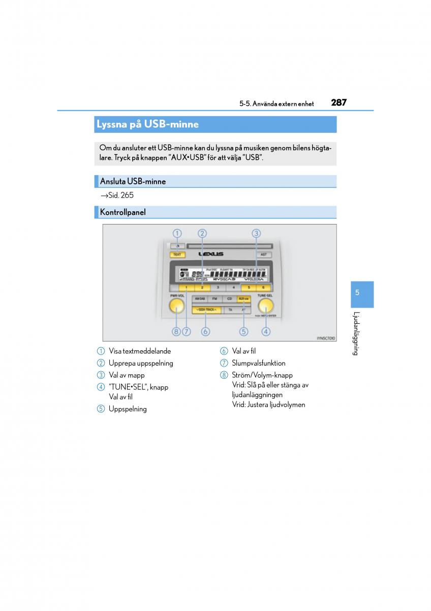 Om du ansluter ett USB-minne kan du lyssna på musiken genom bilens högta-