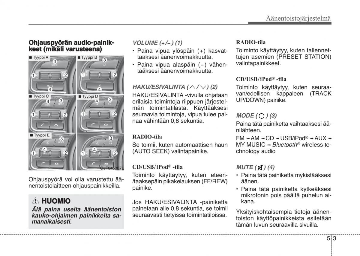Ohjauspyörä voi olla varustettu ää- Toiminto käyttäytyy, kuten eteen- • Paina tätä painiketta mykistääksesi