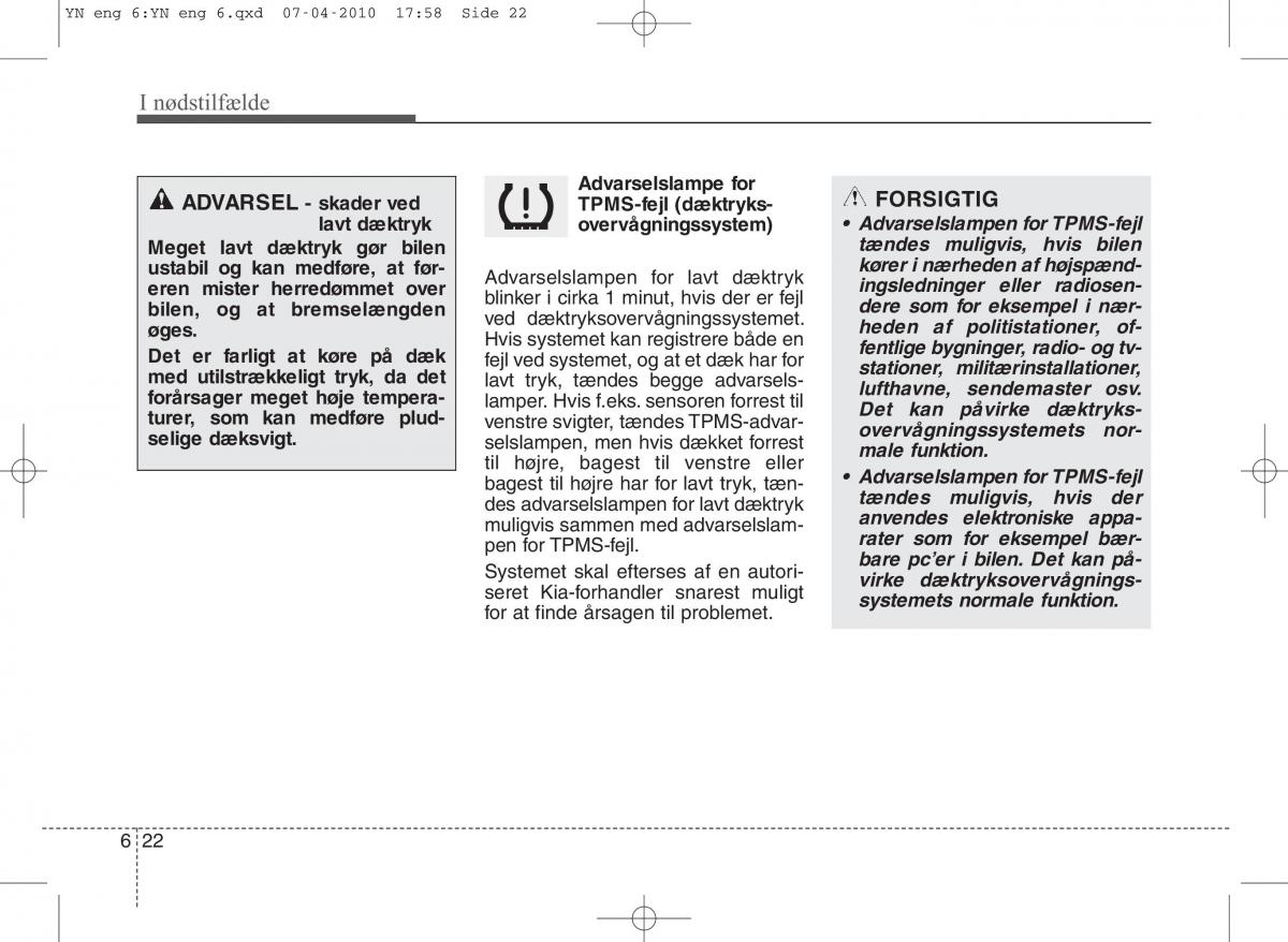 ADVARSEL- skader ved TPMS-fejl (dæktryks-