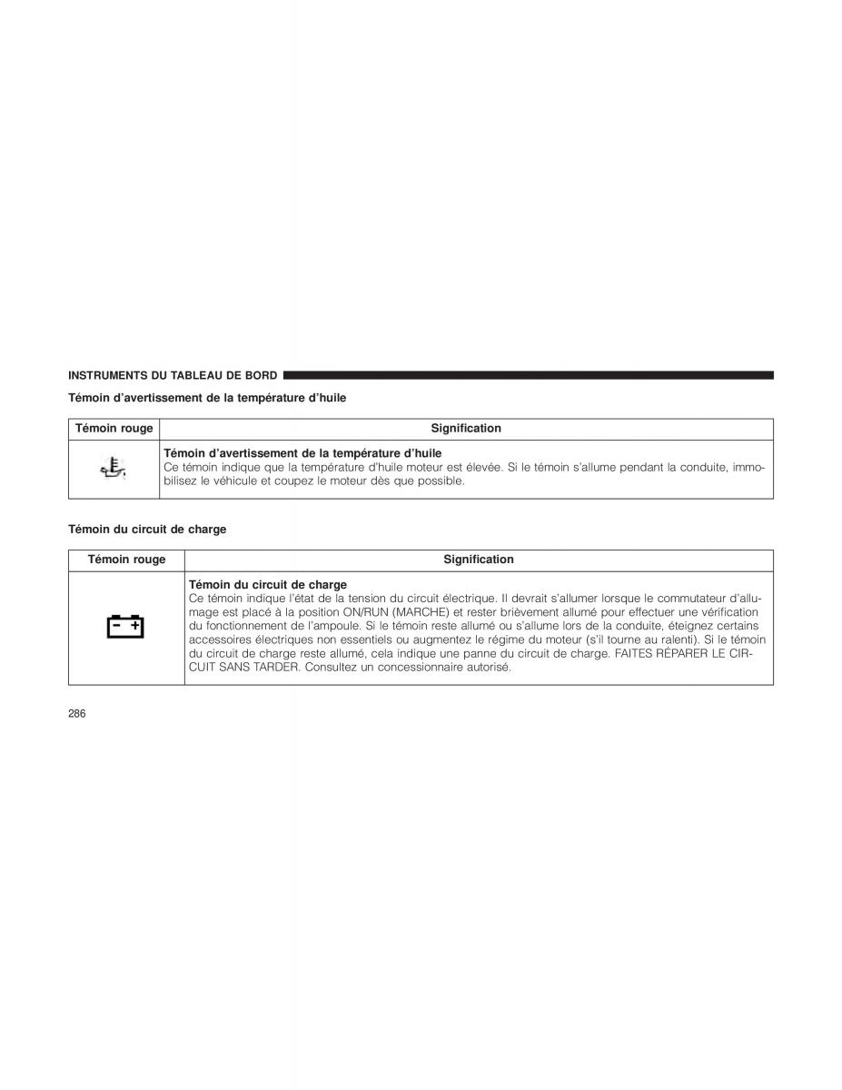 accessoires électriques non essentiels ou augmentez le régime du moteur (s’il tourne au ralenti). Si le témoin