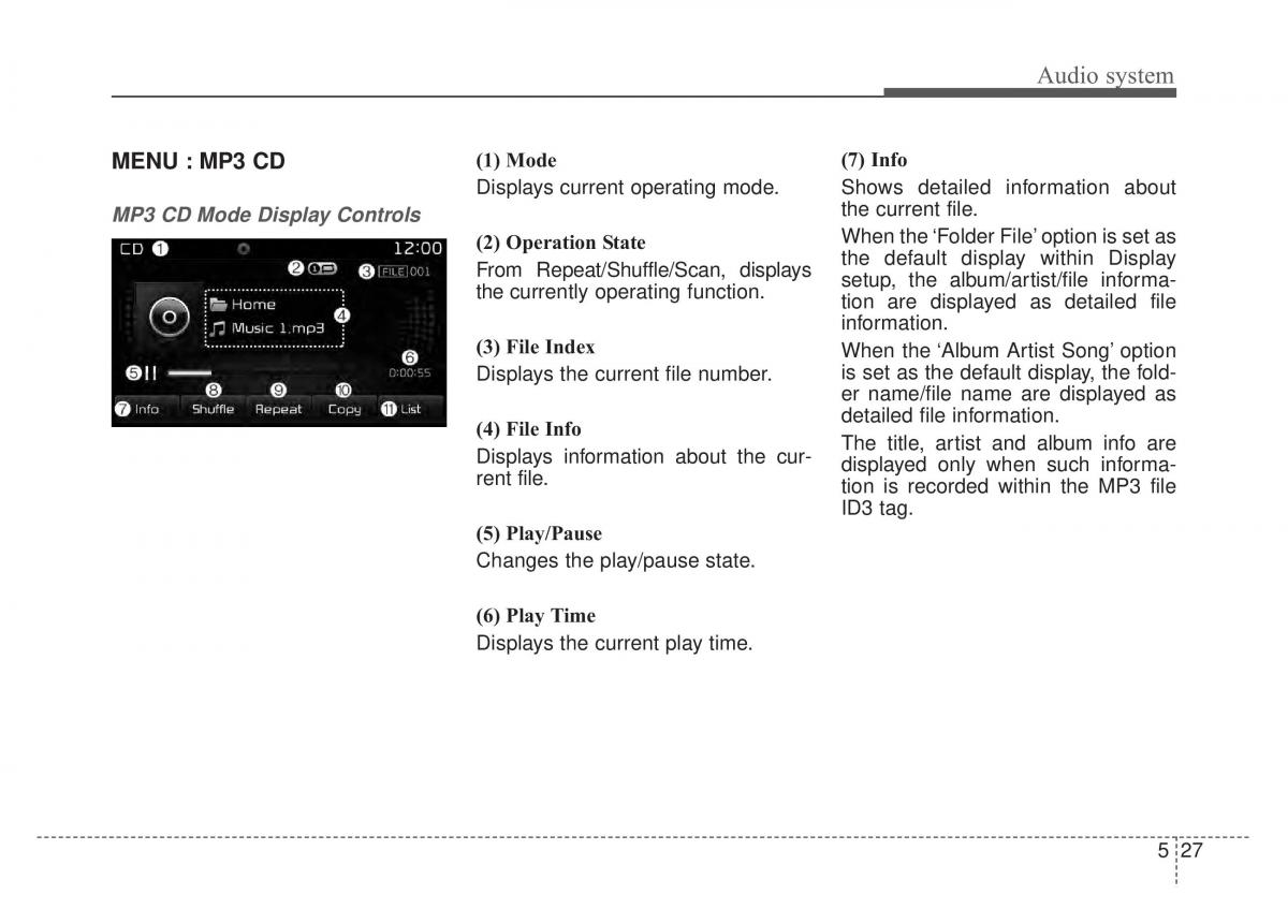 MP3 CD Mode Display Controls the current file.