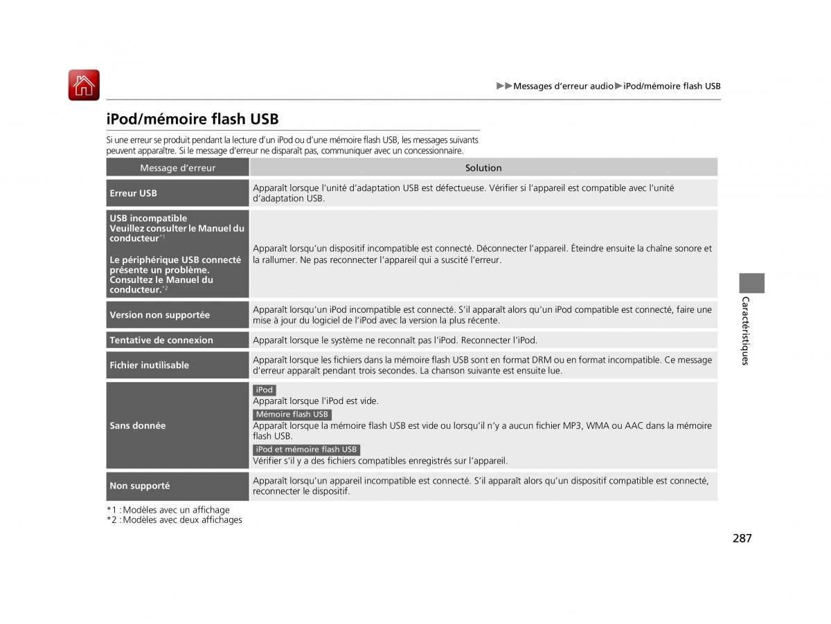 uuMessages d’erreur audiouiPod/mémoire flash USB