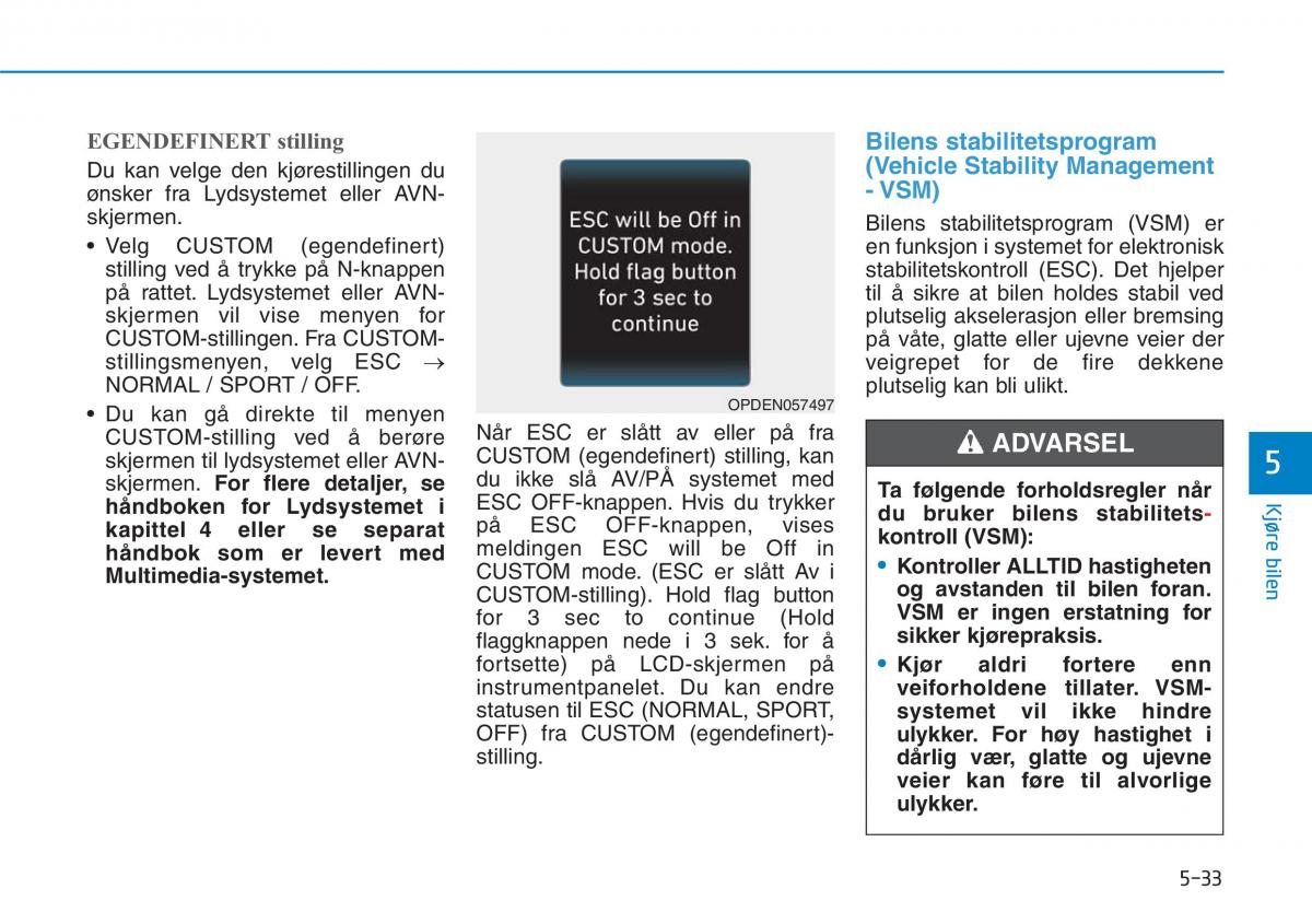 statusen til ESC (NORMAL, SPORT, systemet vil ikke hindre