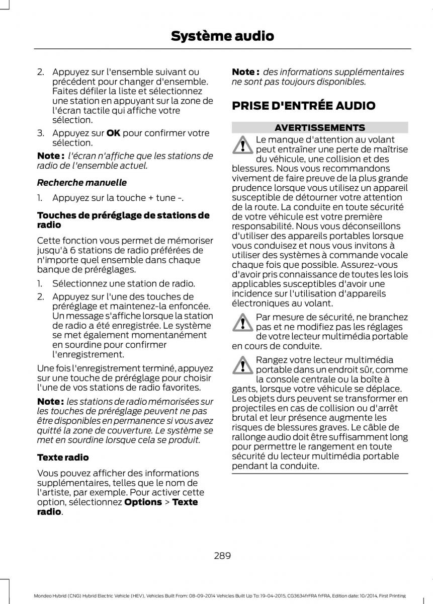 owners manual Ford Mondeo Hybrid - year of production: 2014 - Ford Mondeo hybrid MKV MK5 manuel du proprietaire FR
