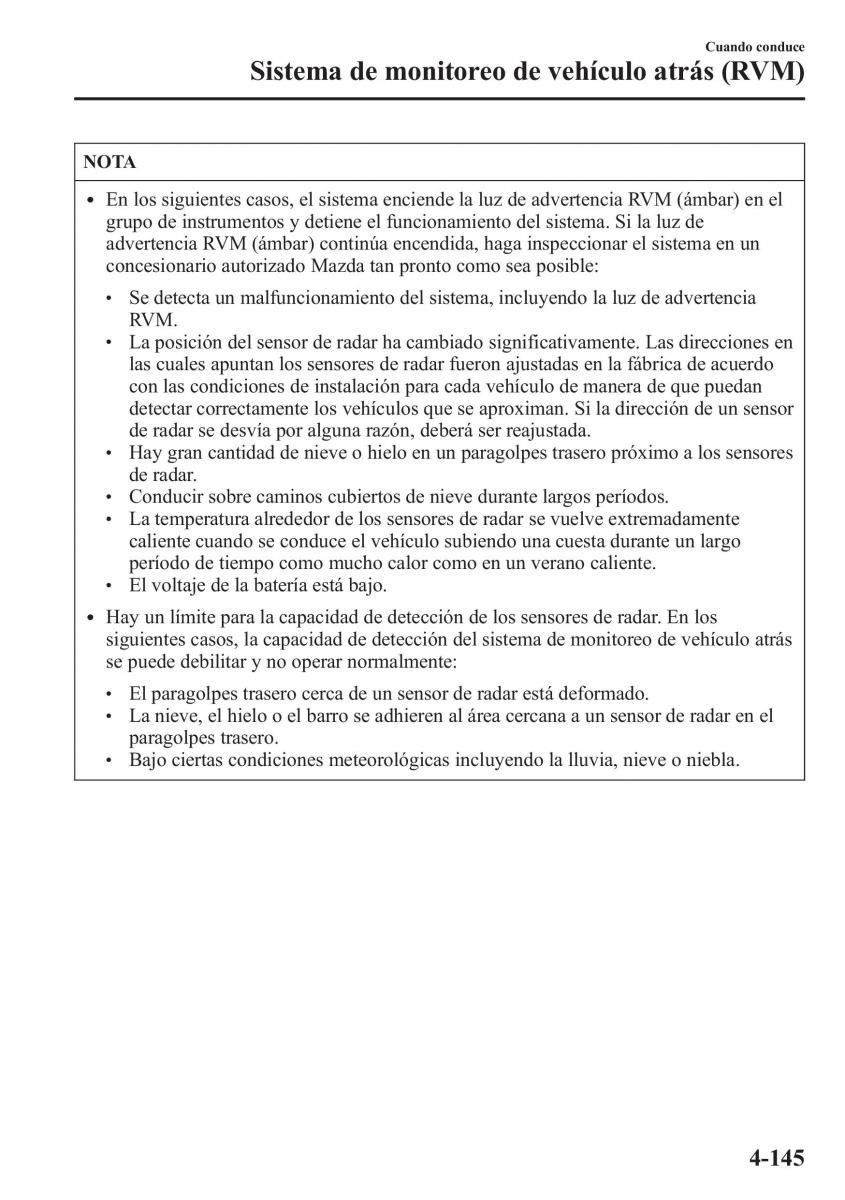 l Enlos siguientes casos, el sistema enciende la luz de advertencia RVM (ámbar) en el