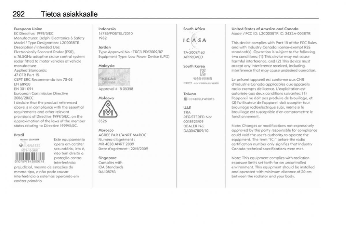 owners manual Opel Zafira - year of production: 2012 - Opel Zafira C Tourer omistajan kasikirja FI
