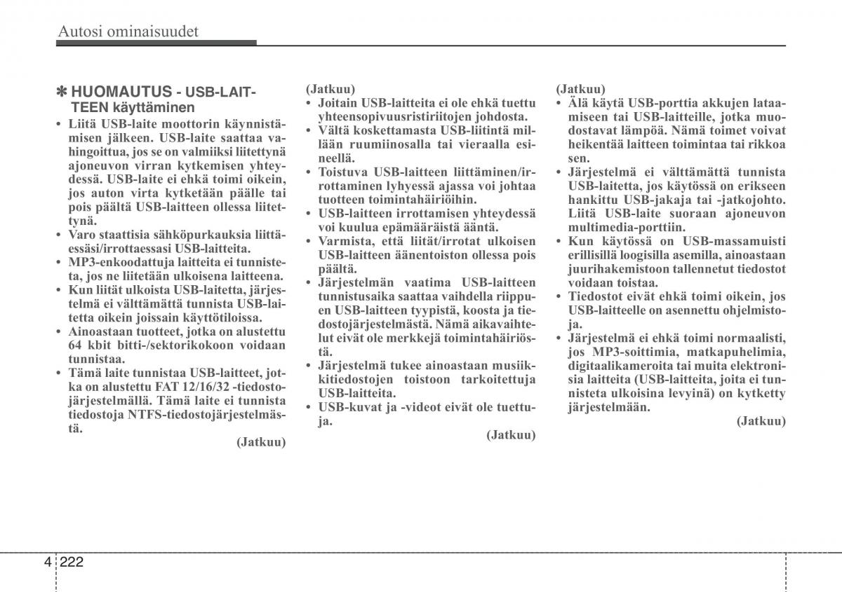 jos auton virta kytketään päälle tairottaminen lyhyessä ajassa voi johtaaUSB-laitetta, jos käytössä on erikseen