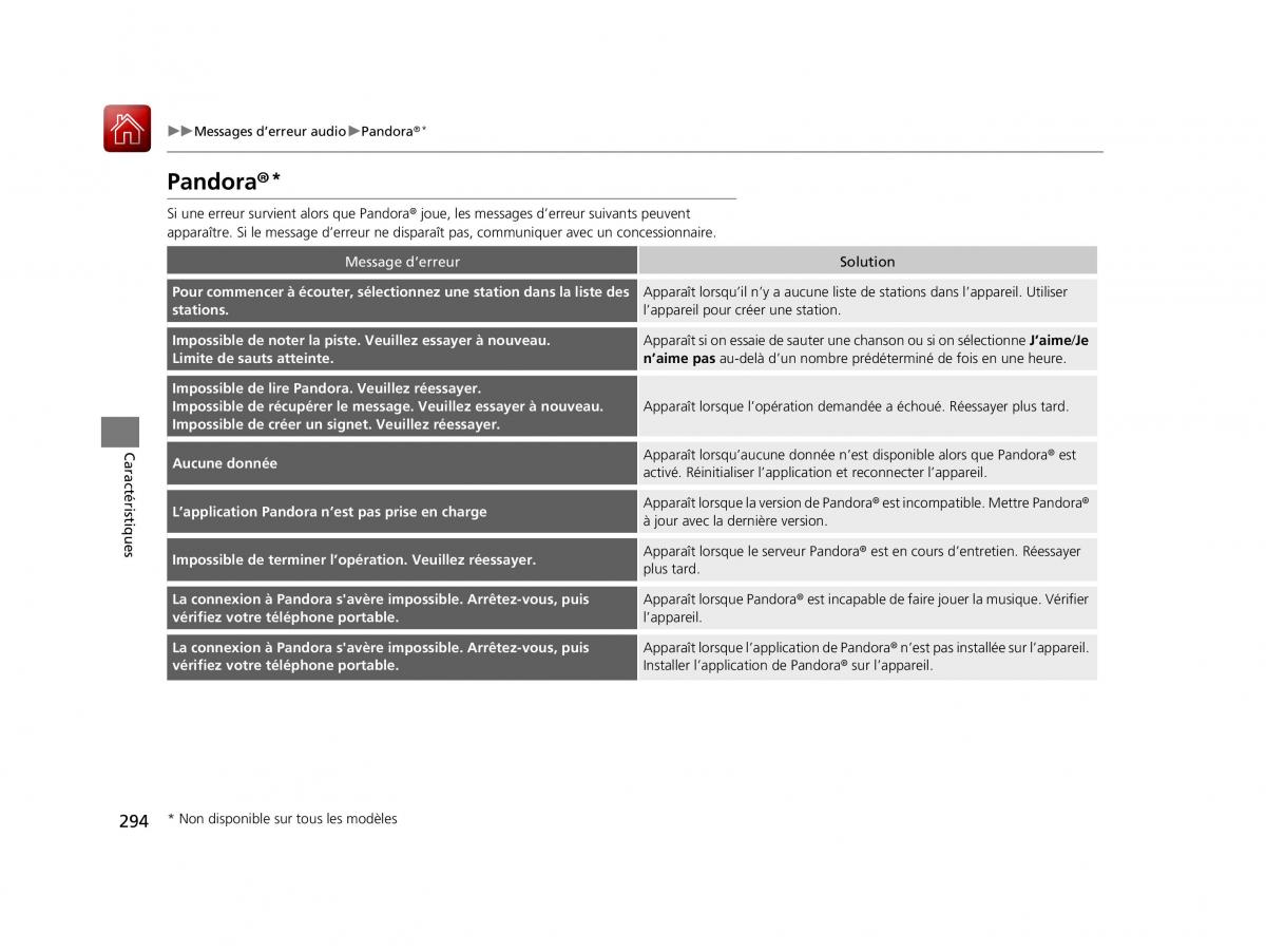 294 * Non disponible sur tous les modèles