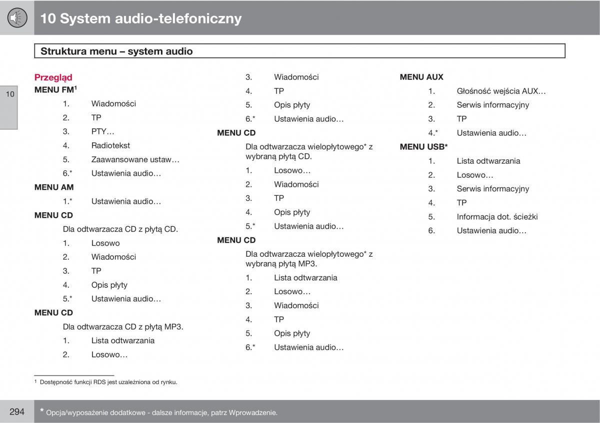 4. Radiotekst Dla odtwarzacza wielopłytowego* z MENU USB*