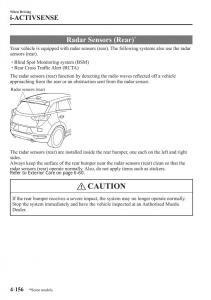 The radar sensors (rear) function by detecting the radio waves refl ected off a vehicle