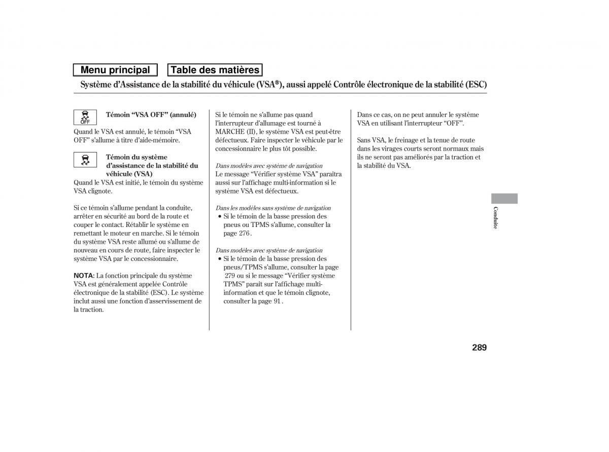 OFF’’ s’allume à titre d’aide-mémoire.défectueux. Faire inspecter le véhicule par leSans VSA, le freinage et la tenue de route