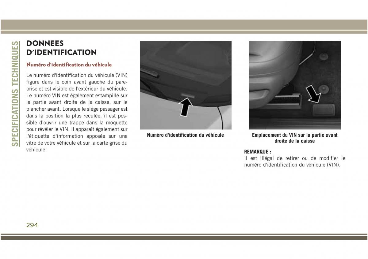 SPECIFICAvitre de votre véhicule et sur la carte grise du droite de la caisse