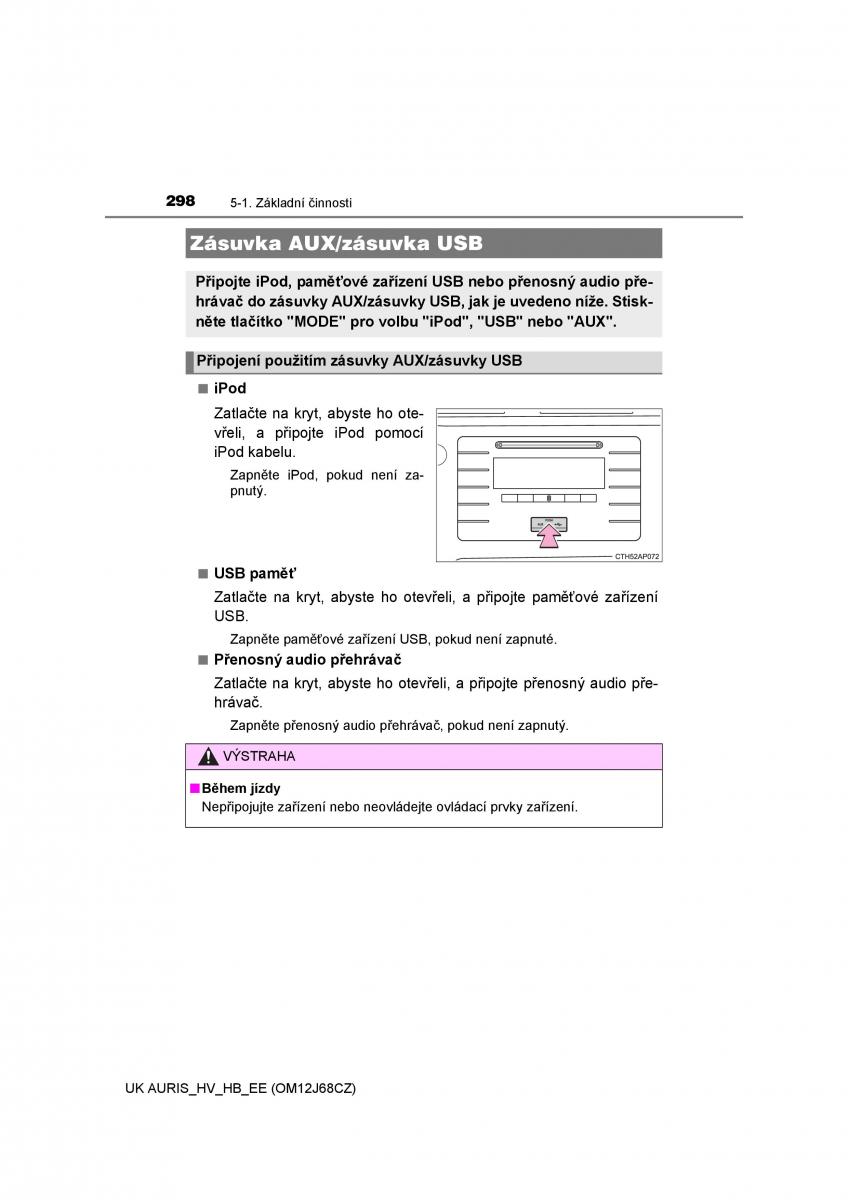 owners manual Toyota Auris Hybrid - year of production: 2013 - Toyota Auris Hybrid II 2 navod k obsludze CZ