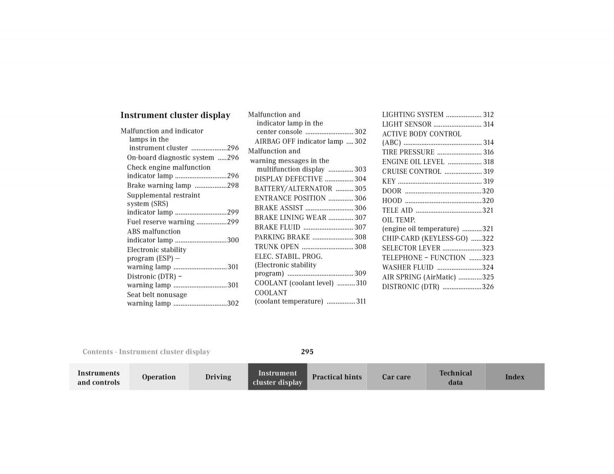 Distronic (DTR) –program) .309AIR SPRING (AirMatic) .325