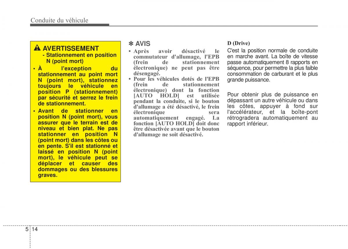 AVERTISSEMENT ✽✽ AVIS D (Drive)