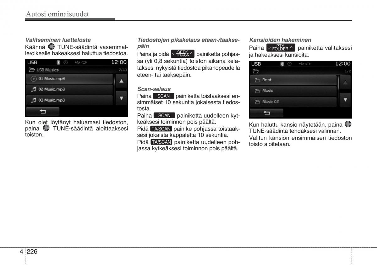 Valitseminen luettelosta Tiedostojen pikakelaus eteen-/taakse-Kansioiden hakeminen