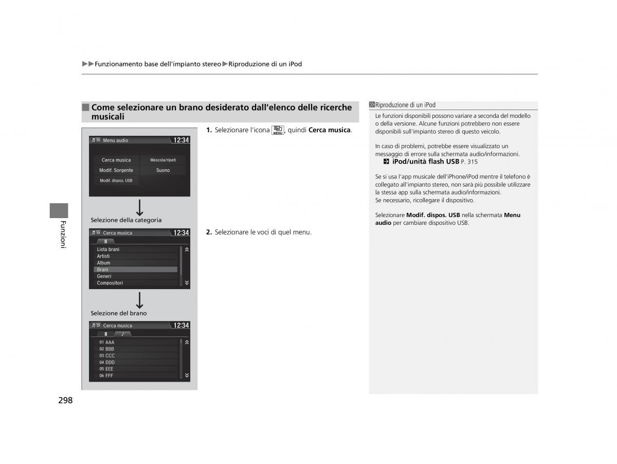 2 iPod/unità flash USB P. 315