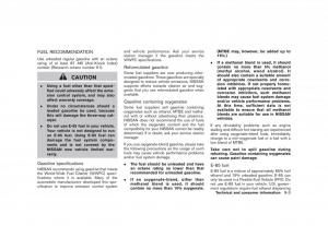 NISSANrecommendsusinggasolinethatmeetsan octane rating no lower than thatE-85 fuel is a mixture of approximately 85% fuel