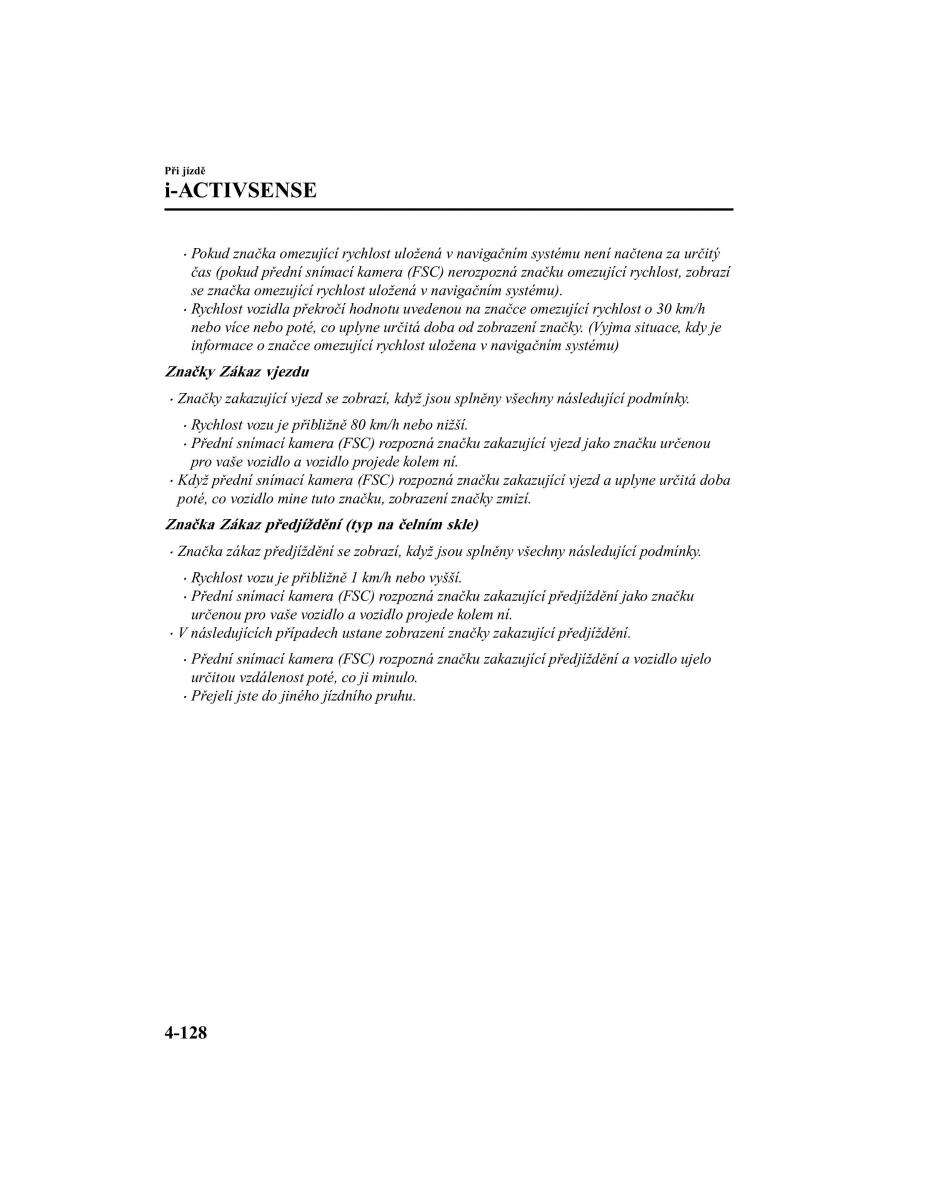 • Když přední snímací kamera (FSC) rozpozná značku zakazující vjezd a uplyne určitá doba