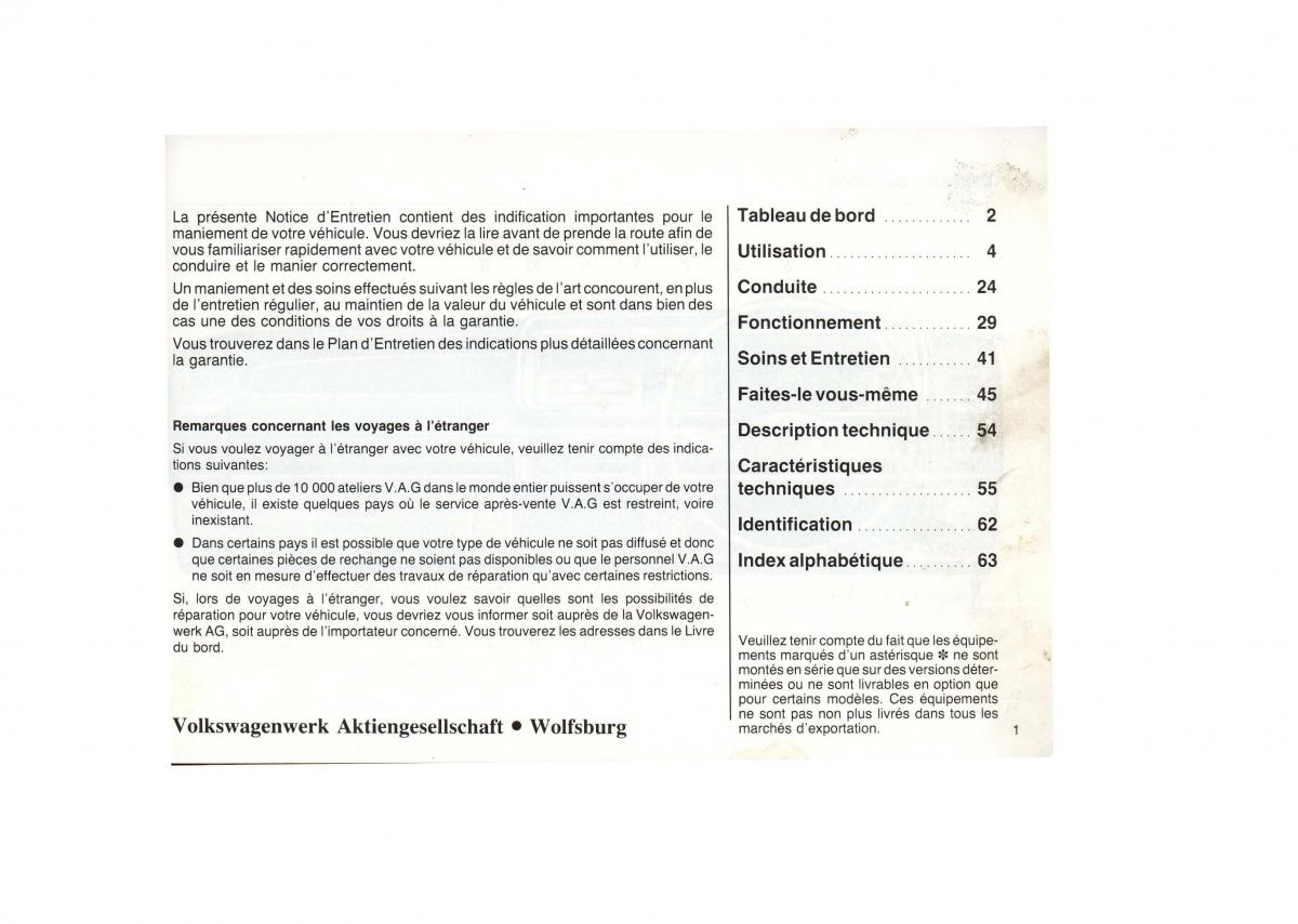 owners manual VW Golf I - year of production: 1974, 1975, 1976, 1977, 1978, 1979, 1980, 1981, 1982, 1983, 1984 - VW Golf I 1 pickup manuel du proprietaire FR